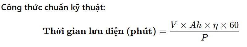 (Cách tính này chỉ mang tính chất tham khảo đối với một số dòng UPS, muốn biết chính xác thời gian lưu của bộ lưu điện SANTAK vui lòng liên hệ với chúng tôi để được tư vấn)